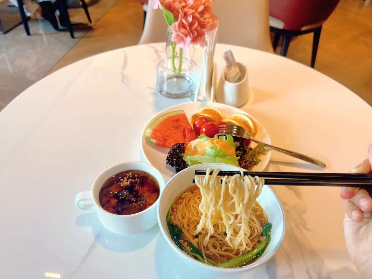 食物的香氣暖融融地裹上來,我在騰騰熱氣的牛肉面和金黃酥脆的“智選星級可頌”間小小躊躇——但是,成年人不做選擇,一起拿下。