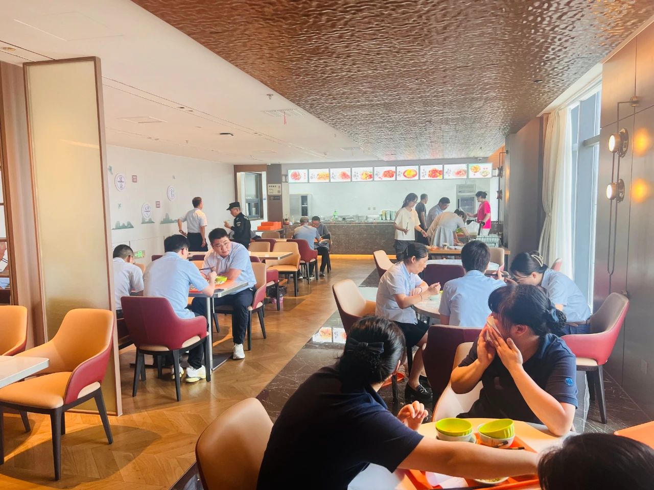 時鐘敲響十一點半,電梯便輕快地將我送到十八樓——共享餐廳的熱鬧氣息撲面而來。